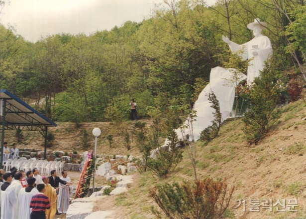 - 1998년 4월 26일 단내성지에서 김대건 성인상 제막식이 열리고 있다. 가톨릭신문 자료사진