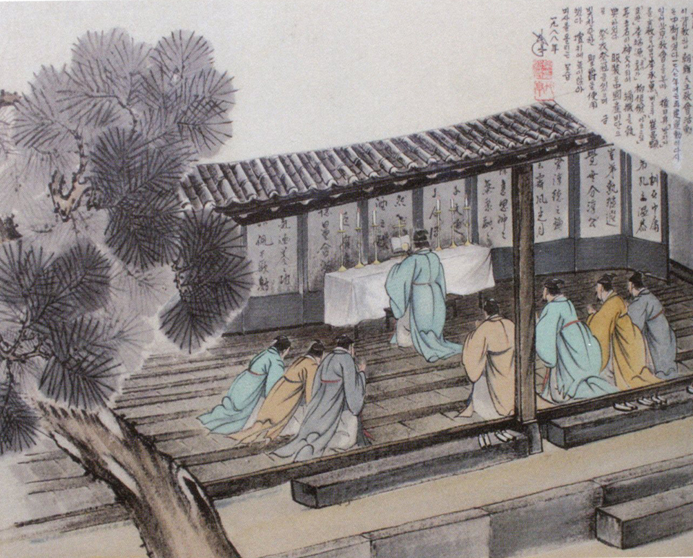 - 이승훈과 권일신, 정약용, 이존창, 유항검 등 교회 지도자들은 미사와 성사를 통해 신입 교우들의 신앙을 더욱 굳건히 하기 위해 1786년 가을부터 가성직제도를 시행한다. 탁희성 작, ‘가성직제도’, 지본채색, 1988.1785년 3월 ‘명례방 사건’이라고도 불리는 ‘을사추조적발사건’이 있은 후 여러 양반 집안에서 가톨릭 신앙에 심취해 있는 젊은 그리스도인들을 단속하기 시작했다. 이 일로 초기 조선 교회의 두 기둥이었던 이벽(요한 세례자)과 이승훈(베드로, 당시 29세)이 가장 큰 타격을 받았다.